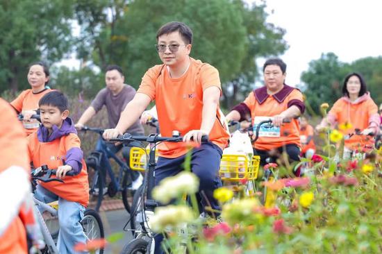 11月9日,西湖区铜鉴湖花海驿旗帜飘扬、人声鼎沸,以“骑游FUN肆嗨”为主题的2025年西湖骑遇黄龙骑行...