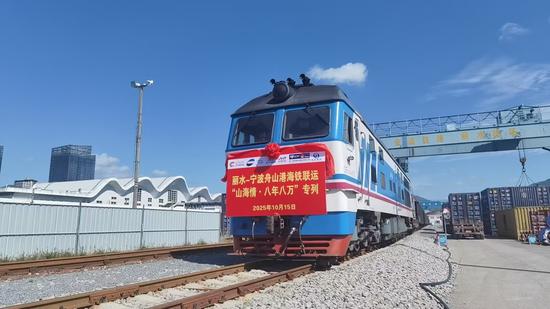10月15日,“丽水—宁波舟山港”海铁联运第八万个标准箱完成装车,从浙江交通集团金温铁道公司丽水...