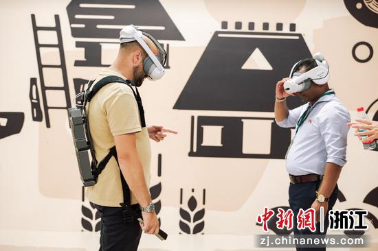 外国友人在位于余杭的良渚古城遗址公园体验VR。摇慧敏供图