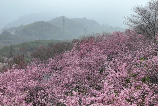 中新网浙江新闻3月18日电近日,在浙江交通集团杭州绕城高速西复线瓶窑西收费站附近,6万株樱花在近60...
