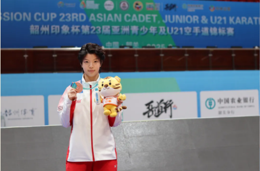 日前,在广东省韶关市举行的2025年亚洲青少年空手道锦标赛中,洞头区第一中学学生周奕煊与队友联袂代表中国队出战,凭借扎实的技术与默契的配合,最终斩获青少年女子团体型项目第三名,为国家与家乡赢得荣誉。
