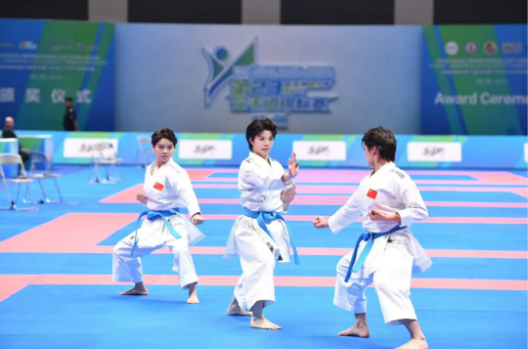 在征战此次亚洲锦标赛赛场时,面对部分对手实战经验更丰富的挑战,周奕煊和队友顶住压力,凭借顽强拼搏的武道精神,最终站上领奖台。
