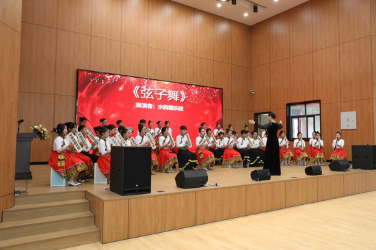 仪式伊始,西坞街道及西坞中学宣传视频生动展现了街道的发展活力与学校的育人成果,随后水韵器乐团演奏的《弦子舞》为活动拉开序幕。