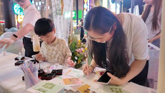 除了高雅的盆景艺术,龙港摊位充满人情味的互动设计同样引人入胜。围绕“心心相印·新兴之城”主题,摊位推出了集花卉印章、寄思念明信片的活动,让园林盛会成为传递情感的纽带。