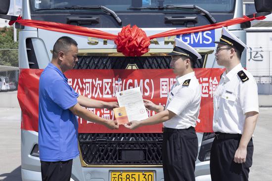 大湄公河次区域合作简称GMS,是中国、越南、老挝、柬埔寨、泰国和缅甸六国达成的区域合作机制,持GMS证书的车辆沿指定线路,在一年有效期内于各成员国之间通关时可实现“一证通多国”,享受“一次申报、一车直达”。