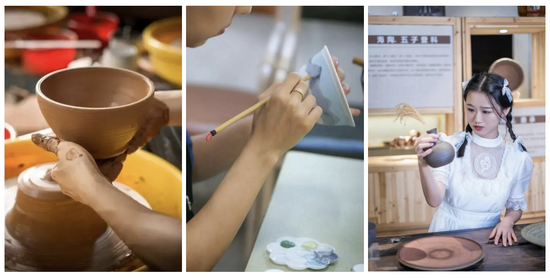 体验项目:海陶拉坯、泥塑、釉下彩制作,作品烧制后可邮寄到家