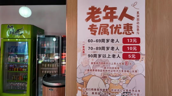 “我们餐厅有50多种菜品,推出了低盐低糖低油的菜系窗口,还有适合老年人的营养炖品等,给老年人提供多样的选择。”刘日期介绍,“针对堂食的老年人,还设置了有专属优惠,一荤两素面向市民朋友是15元,60-69周岁老人只需要13元,70-90周岁老人只需要10元,90周岁以上老人只需要5元。”