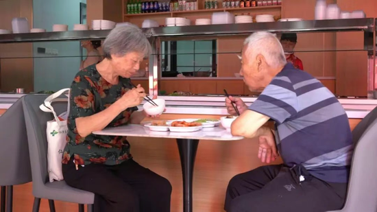 “现在下楼5分钟就能吃到一荤两素,还送了啤酒,米饭软、菜品丰富还低盐!”路伯伯拿着食堂送的免费啤酒笑得合不拢嘴,“这个家门口的食堂真好!”