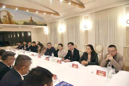 意大利新华时报金荣军报道:2025年10月26日,宁波市贸促会副会长赵大方率团到访罗马、联合国开发计划署驻华代表处项目经理马铮铮率团罗马,受到浙江省贸促会驻意大利办事处首席代表、欧洲华侨华人社团联合会第二十一届大会主席蒋忠南的热烈欢迎,在罗马向阳庄园举行座谈交流会,意大利大使馆过琳公参、李李冰清领事,罗马侨社侨领应邀出席活动。