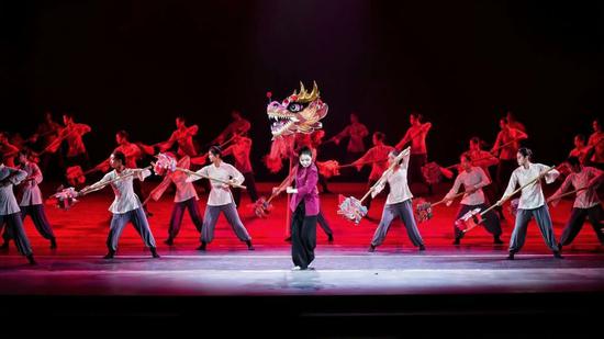 “拼字龙”作为温州传统文化符号,历经沧桑仍生生不息。该舞剧通过“龙吟”“龙脉”等八幕叙事结构,不仅将传统龙舞的刚健雄浑与现代舞美的抒情写意熔于一炉,更生动展现出非遗的代际传承与华侨群体的故土情结。