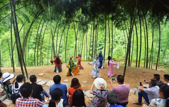 此外,多个方阵暗藏非遗“新表达”:缙云方阵以“黄帝巡游”“穆桂英挂帅”“龙腾齐武”“金竹旗幡”为四大板块,融合婺剧、龙狮舞、钢叉舞等非遗元素,展现缙云从远古祭祀到民俗狂欢的千年文化长卷;遂昌方阵以12米花车还原汤显祖文化,“班春劝农”仪式与昆曲十番非遗联动,展现非遗助力共富的生动实践;松阳方阵则以4大篇章串联起千年农耕文明,竹溪锣鼓、横坑绳抽狮子、松阳高腔等非遗项目相继亮相,诠释“传创承”的薪火延续;景宁方阵以凤凰传说为主线,“盘蓝雷钟”旗幡引领,畲族婚俗展演、服饰秀与小吃车巡游结合,将拉近与观众的距离。