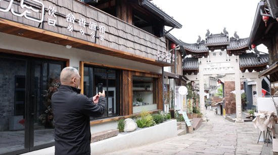 |谭秋民在刘祠堂背拍照|
