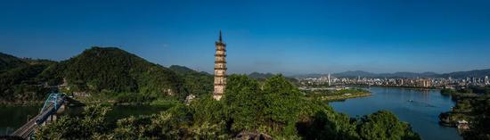 杨增旗 摄巾山塔座落在丽水城南巾山之巅,隔江相望,建造年代应在明正统三年之前,巾山塔外型稳重而不失灵巧,其形制在浙江较为少见,塔建在巾山之巅,登塔可览丽水城风光,巾山夕照是古处州八景之一。