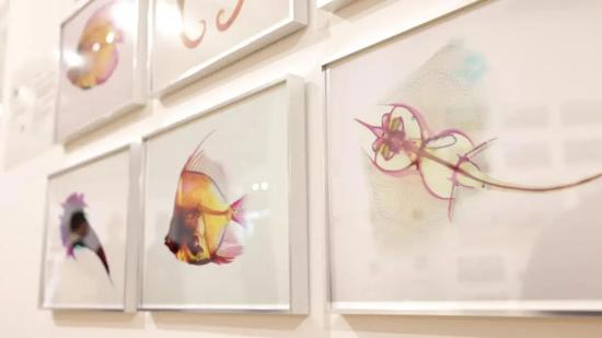 走进古堰画乡艺术中心6号、7号展厅,仿佛踏入一座由光影与思想交织的迷宫。北京电影学院影像传媒学院副教授吴毅的作品《“彩骨”观》,以鱼身骨为媒,借摄影视角化标本为艺术品,于绚烂光色中叩问生命本质。“灯光之下,鱼的骨骼、内脏与肌理都完美呈现,展示出一种迸发、灿烂的生命状态。”吴毅介绍道。