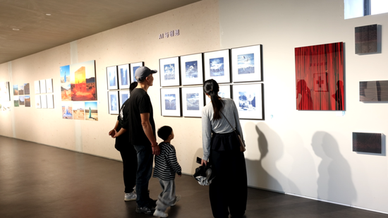 走进古堰画乡艺术中心,前来看展的市民络绎不绝,现场人气十足。3100余幅精选作品沿墙铺展、错落陈列,或写实、或抽象、或充满实验性,正式与公众展开一场跨越文化与时空的对话。“摄影和画作的融合相辅相成,让我们的艺术体验升级。看到一些技术和器材相结合的一些作品,唤醒我们一些尘封的过往的记忆,也让我们对未来有更多的展望,我觉得很有创意。”市民季其颖说。