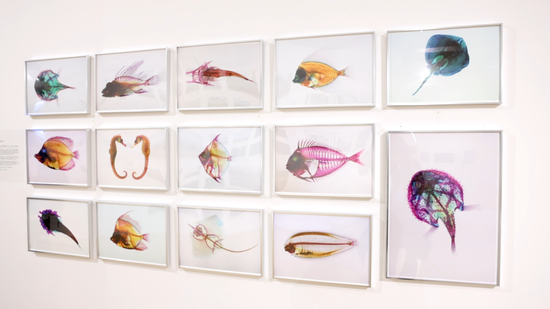 漫步展厅,处处可见惊喜之作。以鱼骨为媒介、在流转光影中叩问生命本质的《“彩骨”观》;将水泥砖、鹅卵石与油漆层层叠加,呈现“时间痕迹”的《展开:物的自显》;还有创作者扎根乡土,以“乡村眼”记录历史纵深的多村纪实摄影。这些作品充分展现了青年创作者突破常规的想象力与扎根生活的创作力,让观众在驻足间感受影像艺术的多元魅力。