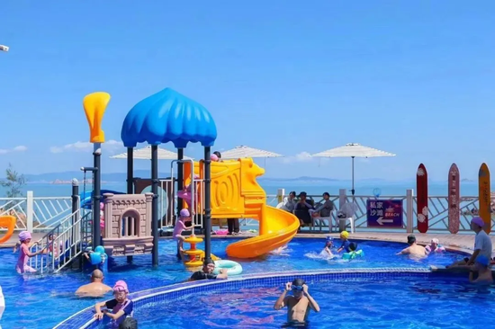 新鸿蓝海度假区,是一个集休闲度假、亲子游乐、研学、露营、疗养、室内娱乐于一体的海岛旅游综合体。蓝海CULB酒店拥有近110间/套客房。在这里,可以漫步沙滩感受海风轻拂,能陪孩子畅玩游乐设施,还能参与研学增长知识,是放松身心、享受生活的绝佳去处。