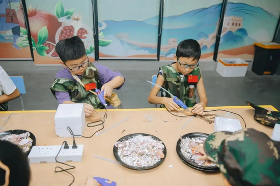 走进东海贝雕艺术博物馆,一幅幅贝雕艺术品映入眼帘,这些贝雕艺术品或陈列在木架上,或悬挂在墙壁上,给人以强烈的艺术视觉冲击。孩子们可以穿梭其间,观察这些贝雕艺术品。
