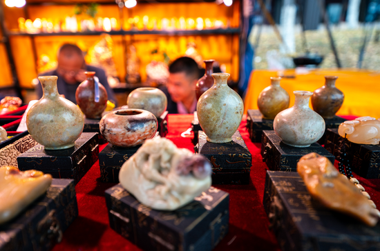 漫步展区,三百余个展销摊位、四百多个精品展柜,陈列出来自全国各地的千余件观赏石珍品。灵璧石的清越、太湖石的剔透、戈壁石的绚烂、瓯江石的温润,数十个石种各展风姿。青田石雕展区更是独具特色,那些出自工艺美术大师之手的石雕作品,将青田石天然的色泽与纹理,通过精湛的雕工化为栩栩如生的艺术珍品,展现着“石不能言最可人”的独特魅力。