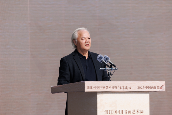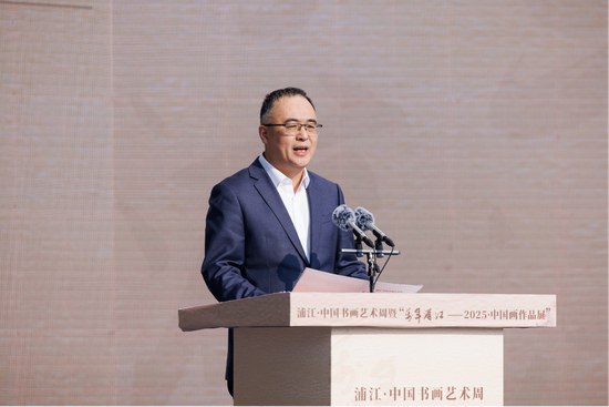 李斌峰代表市委市政府对书画艺术周顺利开幕表示热烈祝贺。他说,书画不仅是浦江闪亮的文化标识,更成为文艺赋美、文化惠民、文旅融合的生动实践,在赋能文化事业繁荣和经济社会发展中发挥了重要作用。浦江·中国书画艺术周前身是浦江·中国书画节,已成功举办十多届,成为全国书画艺术交流展示的重要平台之一。我们将接续奋斗,厚植书画沃土,深耕精品力作,放大品牌效应,推动书画艺术创作创造性转化、创新性发展,持续擦亮“书画之乡”的金名片,让书画更好地服务群众、赋能经济社会、助力高水平建设浙江中西部文化中心。