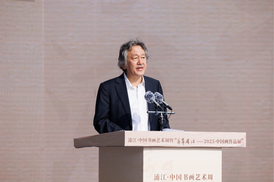 开幕式上,张旭向浦江县人民政府捐赠作品,举行了美术图书、书画捐赠证书颁发仪式,宣读了“万年浦江——2025·中国画作品展”收藏奖名单。开幕式后,与会领导、嘉宾、艺术家共同参观了相关展览。