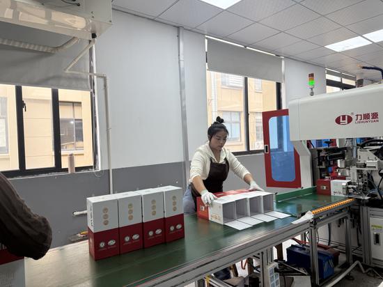 同样忙碌的还有温州莱瓯包装有限公司。作为一家专注酒类包装生产的企业,该公司引进的礼盒流水线实现了从纸张裁切到成品打包的全流程一体化生产,生产效率翻倍。目前企业生产的酒类包装产品占比达90%,智能化设备的投入让企业在市场竞争中更具优势。