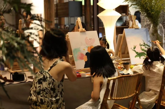 五年来,余东村牢牢扎根农民画这一特色IP,逐步构建起创作、衍生、体验、销售融合发展的全产业链体系。如今漫步村庄,文化气息扑面而来:全国唯一“国字号”农民画美术馆——中国乡村美术馆坐落村口,民居的白墙黛瓦上绘着农耕欢歌与田园牧歌,喜作艺术空间、默尘艺术空间、添妃香薰体验店、余东画糕等业态接连上新……2024年,农民画相关产业产值突破2500万元,产业相关从业人员人均收入达4.5万元。