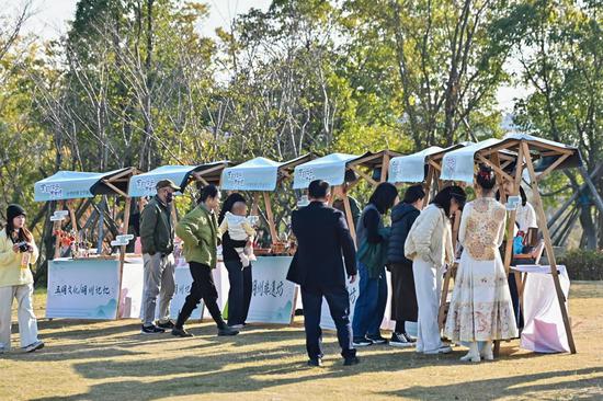 作为“文化+妇联”的基层活动试点,钟公庙街道将文化盛宴送到了百姓家门口。在欢乐海岸体育公园活动入口处设置的“宋韵打卡点”吸引众多群众驻足拍照,明州非遗坊的文创摊位展出剪纸、竹编等传统手工艺品,让观众在互动中体验文化魅力。钟公庙街道相关负责人表示,文化惠民,不能简单地把戏台搭起来让人看,而是要让每个人都成为主角。