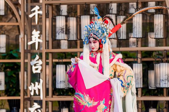 展演活动创新性地打造“城市地标即舞台”的沉浸式体验,将演出感染力推向新高度。展演场地巾山广场作为临海台州府城的核心地标,其独特的自然地貌与古城风貌被充分纳入舞美设计,形成独一无二的视觉体系。黛青屋脊、实景舞美与悠扬歌声交织,让观众在真实的古城景观中“用耳朵旅行”,两小时的演出全程沉浸在“一地一故事,一歌一风景”的文化氛围里。