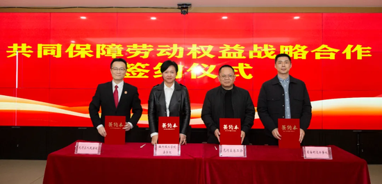活动现场,温州理工学院法学院副院长朱美宁对中心情况进行了全面介绍,龙湾区总工会、龙湾区法院、星海街道办事处与温州理工学院法学院共同签署了劳动权益保障战略合作协议,四方携手构建联动机制,为织密园区职工服务网络奠定坚实基础。