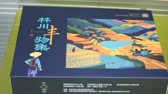 在外包装设计上,“丰物集”巧妙融入了传统套色版画元素,将林川的梯田层叠、河川蜿蜒、山峦起伏以及农户劳作的生动场景,都一一绘于礼盒之上,使其本身就成为一幅可观赏、可阅读的“林川风情画卷”。
