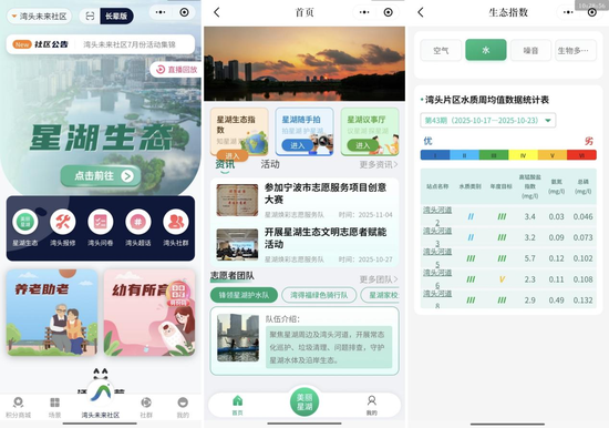 “星湖的美,不能只靠少数人守护,要让守护生态成为大家伙儿的生活习惯。”区人大常委会城建环保工委与区住建局、生态环境江北分局共建上线了“星湖生态”线上平台。如今,只要打开手机,居民便能实时查看星湖各监测点的水、气、噪音、生物多样性等数据,遇到垃圾散落、水体异常等问题可随手拍照上传,“指尖护水”成为日常。