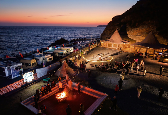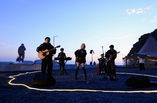 当天早晨6点,营地里悠扬旋律响起。大家围着篝火,面朝大海,在这“蓝调时刻”静静等待。当曙光初现,染红天际线与海平面,乐队奏响欢快乐章,现场观众共同用歌声与欢呼迎接新一天的到来。许多人举起手机,记录下这浪漫瞬间。