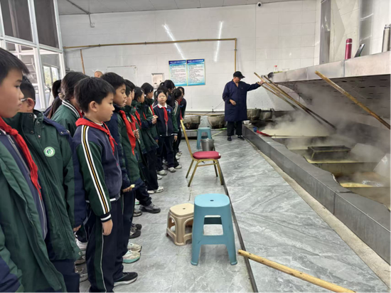 甘蔗收割的前一天,五年级段学生们以小组为单位走进“玉畦园”,对园里的甘蔗完成松土、扶茎、砍伐等采收步骤。“亲手收割自己栽种、精心培育的甘蔗,太有成就感了。”学生们纷纷表示。采收结束后,师生一同走进校外红糖厂,开启传统制糖技艺的探秘之旅。他们近距离观摩甘蔗榨汁、滤渣、熬煮、成型的古法工艺,现场倾听技师讲解制糖技艺的历史传承与现代创新,沉浸式了解了红糖背后的文化底蕴与匠心精神。