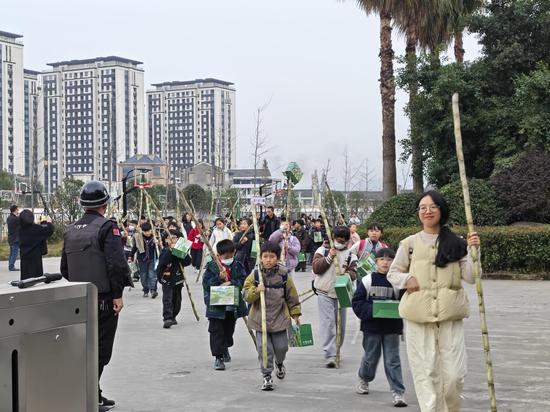 “回家吃自己种的甘蔗咯!”12月12日下午放学,陶山镇中心小学2000余名学生“一手拿甘蔗,一手拎礼盒”出了校门,他们脸上洋溢着幸福的笑容,举着手里的“战利品”向家长展示。