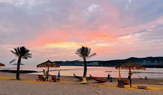 看日落的绝佳机位,必须提名韭菜岙沙滩!当太阳慢慢沉向海平面,金色的光洒满整片沙滩和海面,偶尔有烟花在夜空绽放,微寒的风里都多了几分烟火气的温暖,随手拍段视频,朋友圈点赞绝对爆棚。