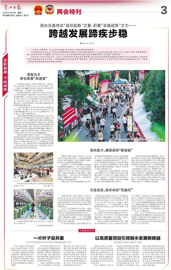 铆足干劲拼经济,展现新年新气象。2026年元旦假期后首个工作日,市委经济工作会议召开,部署“八大战略行动”和抓项目稳投资攻坚行动。新鲜出炉的2026年浙江省政府工作报告,为丽水新一年的奔跑划出了清晰的“重点”:深化丽水普惠金融等国家级区域金融改革试点、增强金丽温开放大通道辐射带动能力和推动丽水富乐德传感技术项目建成投运。省市号角齐鸣,为处州大地新一年的奋进跨越,指明了方向,注入了强劲动力。