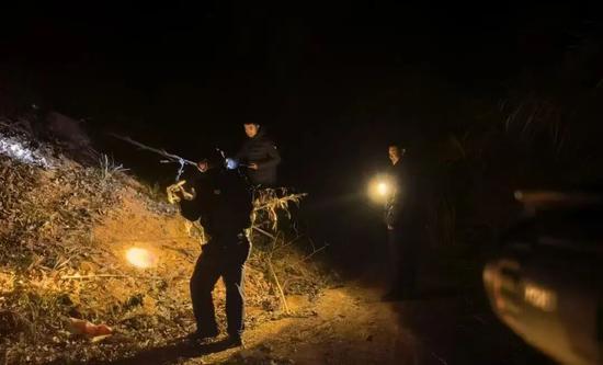 郑孝斌和队员们在黑夜中搜寻丨谢南根 摄