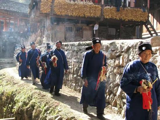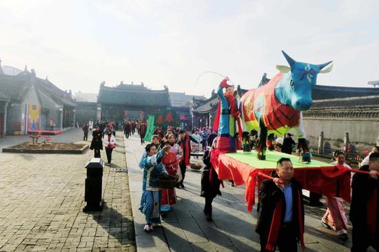 九华的梧桐祖殿外,24名头戴柳圈、提着灯笼的“迎春使者”吟诗悦唱,迎接春天到来,并送上福袋和祝福。内乡的长辈们为孩童带上春鸡,亲友间互赠春牛、剪纸福字,暖意融融传递新春祝福。
