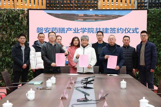 为深化产教融合,推动磐安药膳产业高质量发展,培养高素质技术技能型药膳人才,1月30日,浙江商业职业技术学院、膳将来(磐安)药膳科技有限公司、磐安县职业教育中心三方举行磐安药膳产业学院共建签约仪式,并为磐安药膳产业学院揭牌,三方共建全力推动磐安药膳产业高质量发展。