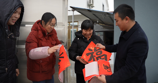 “手写的春联更有年味,也更能感受到心意。”村民葛阿姨折起刚领到的春联笑着说。活动组织者不仅在现场书写赠送,还主动为不便出门的群体送联上门,让关怀覆盖更广。