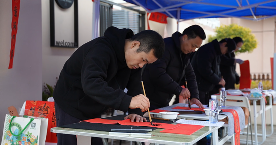 1月30日,澥浦镇共富工坊综合服务中心组织书法爱好者与志愿者走进沿山村,开展新春送春联活动,以笔墨传递祝福,营造喜庆祥和的节日氛围。