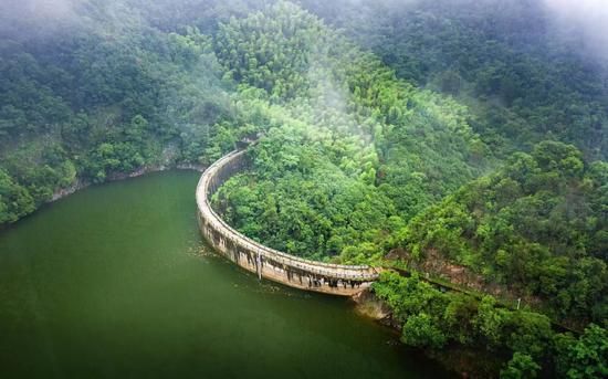 林茶村,位于建德市莲花镇北部。村里的林茶水库建成于1981年,最大蓄水量达188万立方米,坝高46米,呈半圆形向内凸进,被誉为“亚洲第一拱形坝”。水库四周连绵的茶山与碧波荡漾的水面交相辉映,构成了一幅美丽的绿水青山画卷,成为了林茶村旅游经济发展的一张“金名片”。