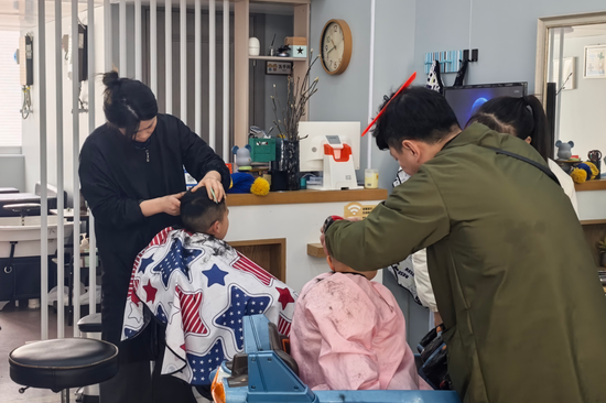 辞旧迎新,除旧布新,理发、洗车等便民行业也提前进入“春节忙碌模式”,用暖心服务助力市民解锁新年仪式感。在北岙新城区的一家理发店内,一早便客流不断,市民有序排队等候,理发师各司其职,一边耐心倾听顾客需求,一边精心修剪打理,全力为顾客打造心仪的新年发型。市民曾女士带着孩子前来理发,她说,想让孩子清清爽爽过年,目前的理发价格也相对合理。据悉,当前理发店客流量整体平稳,返乡潮后将迎来烫染高峰,为应对忙碌场景,多家门店已提前延长营业时间、增设预约服务。