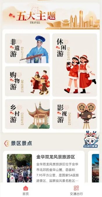 “金华畅游码”围绕春节出行消费全场景,精心设置了游在金华、购在金华、住在金华、玩在金华、吃在金华五大功能版块,为广大市民、游客出行提供便捷、优质选择。