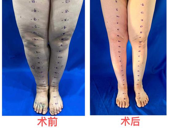 2025年6月,叶朝辉团队为李女士施行了右大腿内侧聚能振波PAL动力辅助吸脂减容术。术后腿围显著缩小,久违的轻松感让她重燃信心。