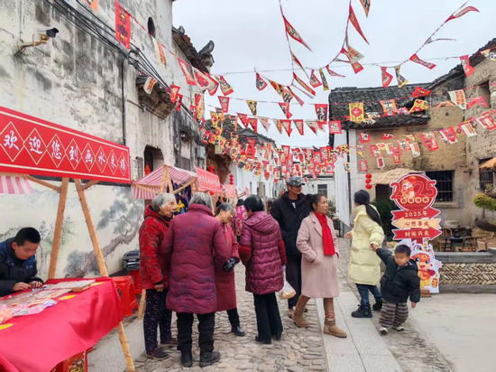 画水镇旭光老街结合古建筑活化利用打造集文化传承和乡村共富于一体的非遗共富市集。活动期间,将设立特色摊位,现场售卖烤饺子、索面等地道乡土小吃。元宵当天张灯结彩,猜灯谜、投壶、婺剧表演轮番登场,还能体验中国结编织、红糖熬制等本土非遗技艺。