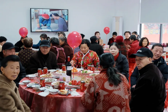 小年添喜,张灯结彩的北岙街道大王殿村居家养老服务照料中心里,一场热闹的百叟宴如期开席。全村60岁以上的长者欢聚一堂,谈笑声、碰杯声、祝福声交织在一起,把小年的祥和与新春的喜庆,酿得愈发浓厚。