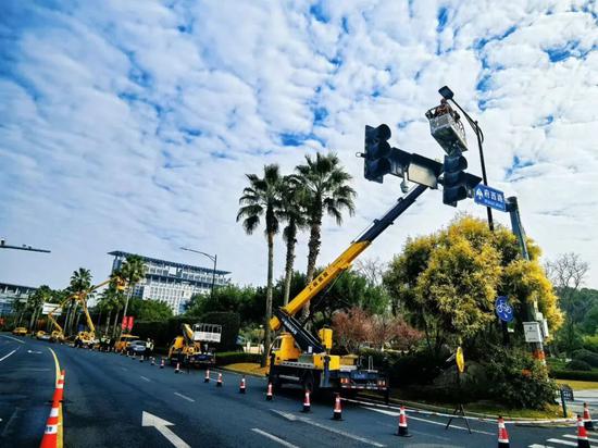 路灯综合养护分公司着力提升城市光影形象。机场互通2座高杆灯已完工投用,成为夜间重要地标。交通主干道瓯海大道上,36盏故障灯具与1000米故障电缆更换一新,确保这条“迎宾大道”的夜色璀璨。府西路、府东路上176套新式灯挑、灯具全部更换到位,显著提升照明品质,进一步优化区域夜间环境,以璀璨靓丽的城市夜景迎接八方来客。