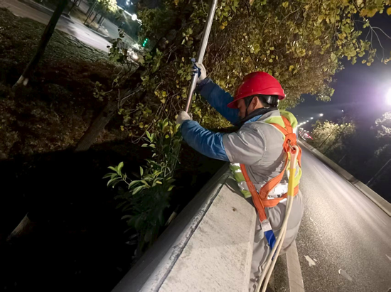 针对隧道安全,重点开展上京、浃底隧道内5113米排水沟疏通,保障排水通畅。此外,为提升园博保障路线的整体景观,养护人员专项清理了牛山至动车南站双向高架护栏的杂草,让城市“空中走廊”整洁美观。
